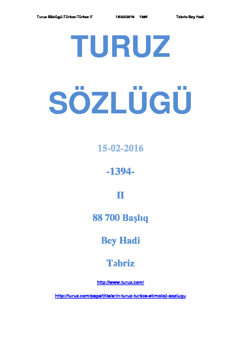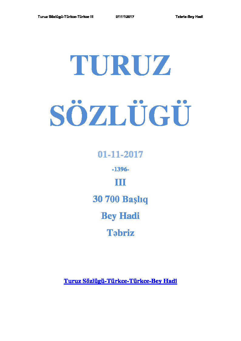 2021 Turuz Sozlugu Turkce Turkce 1 2 3 4 5 6 Bey Hadi Turuz Tebriz